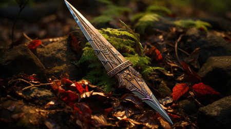 Flint knife - stone age tool (leaf blade in deer antler) on rock