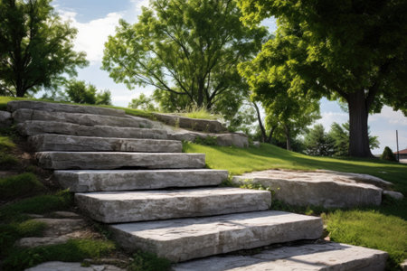 outdoor natural stone steps doubling as workout stairs, created with generative ai