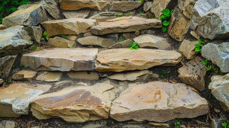 stone staircase slowly emerging from the soil, created with generative ai