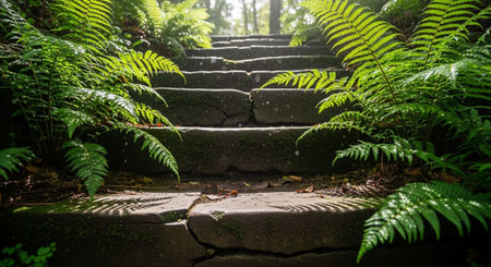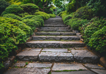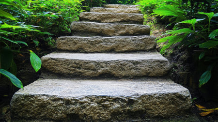 Stone Steps Leading Up Through a Lush Garden - ai
