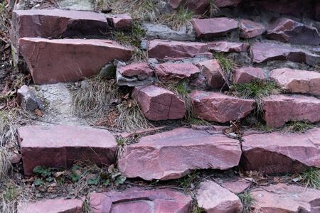 old stone steps made of red stone