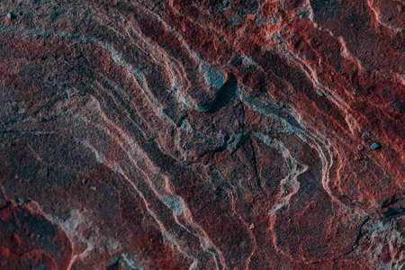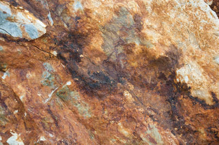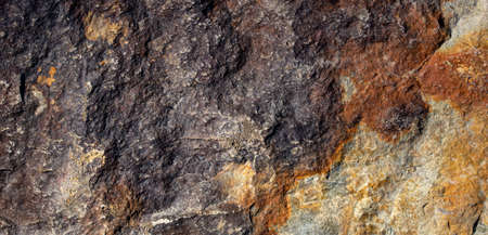 Stone textures. Dark orange banner. Colorful mountain texture. Close-up. Voluminous. Abstract rock background. Macro detail of the rock.
