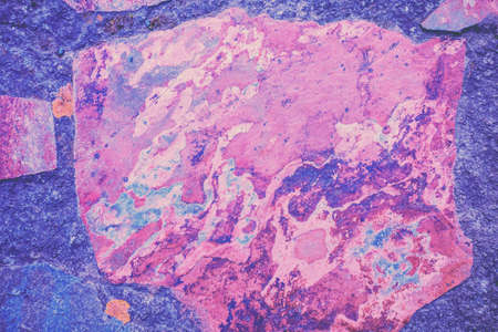 Rock texture. Dark stone wall. Stone background. Rock surface with holography, nacre. Wall abstraction. Paint spots. Rock surface with cracks. Abstract texture.