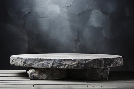 AI Generated. Stage for product display presentation with black rock pedestal Minimalistic natural showcase
