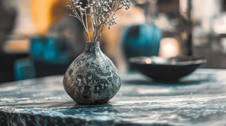 View of a table with a top made of a piece of colored stone of premium class for the hall,Generated by AI