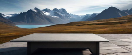 empty table on stone floor with stunning beautiful mountain