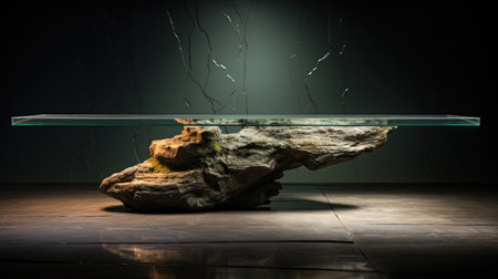 3d rendering of a glass table with a stone in the foreground