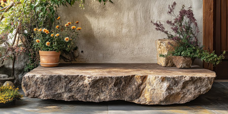 AI Generated. Stone and Rock podium background, minimalist mockup for product display or showcase