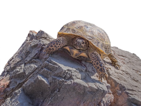 Turtle on a rock by the sea. Wildlife scene from nature.