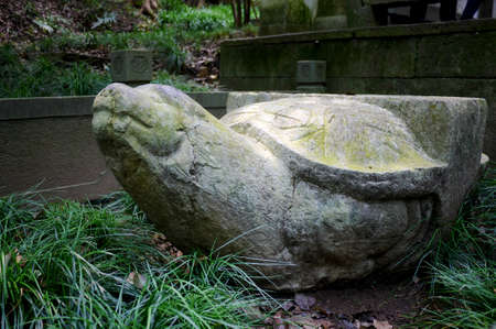 China Stone Turtle Sculpture with Bamboo Trees Background