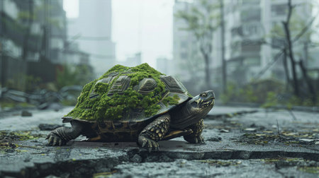 A mythical turtle-like creature with a body made of stone and vegetation.