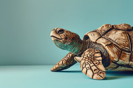 An AI generated illustration of An AI illustration of a wooden turtle against a vibrant blue background.