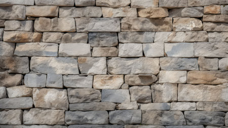 A detailed stone wall background featuring various shades and textures, perfect for architectural, artistic, or design projects needing a natural and rustic appearance.