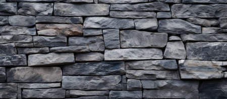 Detailed close-up of a dark stone wall with an irregular pattern and weathered textures, perfect for use in design projects, backgrounds, or architectural visualizations.