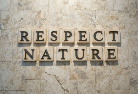 A stylish arrangement of wooden letters spelling Respect Nature on a textured stone surface, perfect for inspiring eco-conscious design and decor.