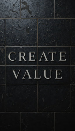 This image features an inspiring text Create Value on a dark stone wall. It conveys a powerful message about growth and success in personal and professional contexts.