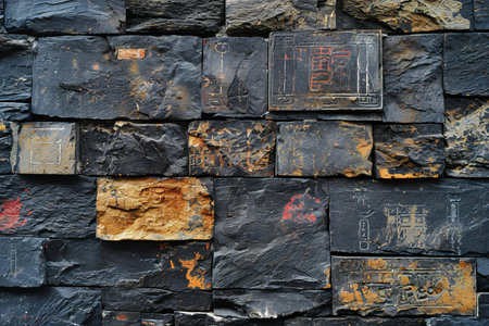 Closeup of a stone wall with hieroglyphs in China
