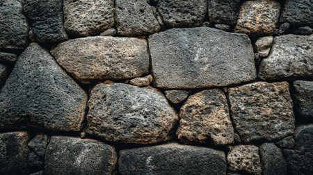 Close-up shot capturing the weathered textures of a sturdy stone wall. The irregular shapes, crevices, and color variations create depth and emphasize the natural beauty of the materials.