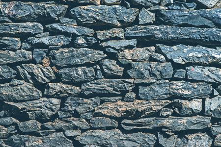 Close up of a black rock stone wall, a prime example of building material