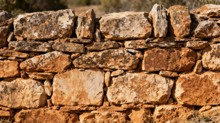 Close-up shot capturing the weathered textures of a sturdy stone wall. The irregular shapes, crevices, and color variations create depth and emphasize the natural beauty of the materials.