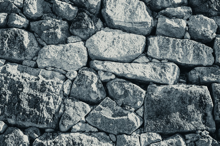 A close-up photograph of a weathered stone wall with irregularly shaped blocks, showcasing the rustic texture and natural beauty of the material.