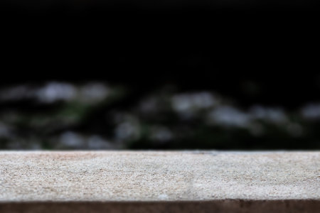 Empty stone or marble tabletop or counter with display product with blured city, town, outdoor background. Display product background concept.