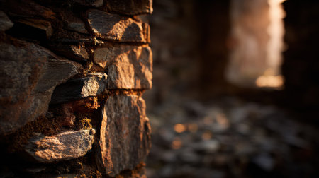Light filters through the old stones of a long-term foundation revealing layers of history and structure in a quiet setting.