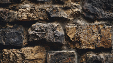 Close-up view of a textured stone wall showcasing intricate details and the rugged surface of natural rock. the image highlights the patterns and shadows, perfect for use in backgrounds, design projects, or architectural studies. Generative AI