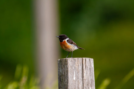 Redstart, Saxicola rubicola, single bird on post, Warwickshire