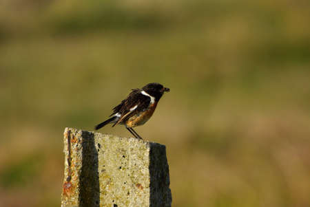 The Siberian stonechat or Asian stonechat (Saxicola maurus)