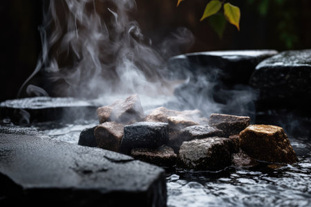Steamy Sauna Session Pouring Water Over Hot Stones.