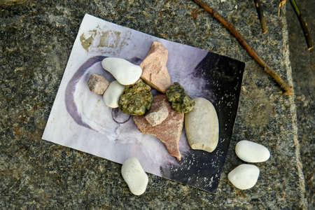 the collection of gemstones, close up photo. treatmnet with stones, health and body care, medicine