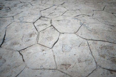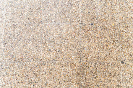 Texture of yellow stone concrete cement tiles, carved texture bricks, round stones with patterns from below and gray concrete from above and copy space. The background.