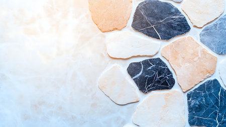 Texture pattern natural white stones and ceramic tiles flat lay. High quality photo