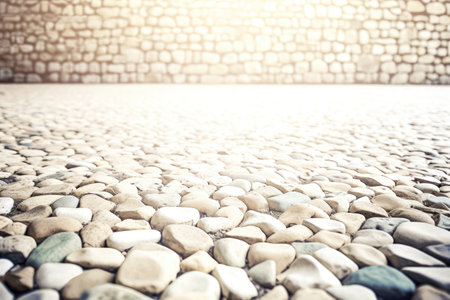 Old Stone Pavement Texture Background, Ancient Granite Cobblestone Road Pattern, Vintage Block Sidewalk Mockup, Paved Roadway Banner with Copy Space for Text, Generative AI Illustration