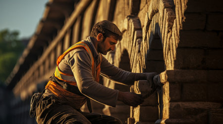 Roman laborer constructing awe-inspiring aqueduct carrying water to city