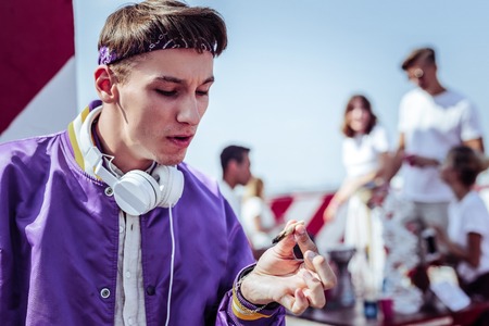 Young guy smoking a marijuana joint while staring at it