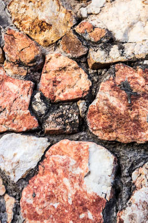 Old wall made of big stones and broken bricks. Vintage rough blocks surface background