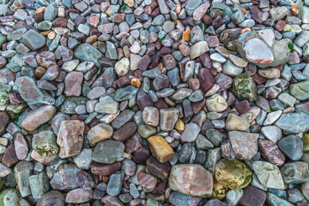 Colorful sea pebbles close-up. Background texture, sea stones in the water.