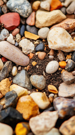 Detailed view of multi colored gravel stones in natural light