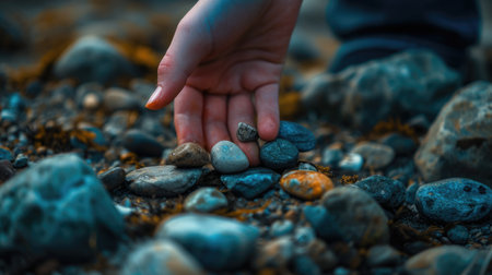 Exploring the unique texture of black sand mixed with varied pebbles on the beach