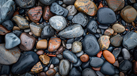 Colorful Wet Pebbles with Natural Patterns and Textures.