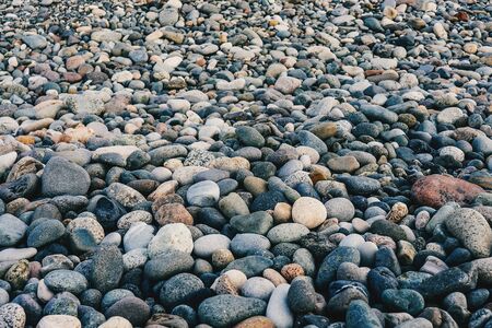 sea stones background. Sea stones of different colors lie on the ocean shore background