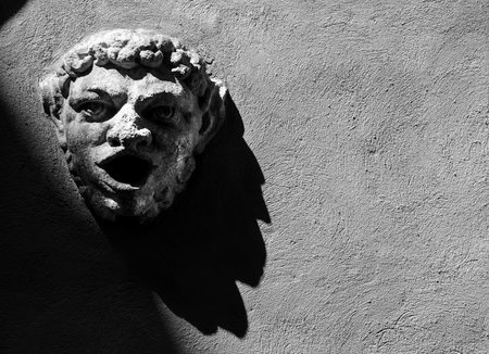 sixteenth century era statue of a man with open mouth and curly hair in the village of Bomarzo close to Rome