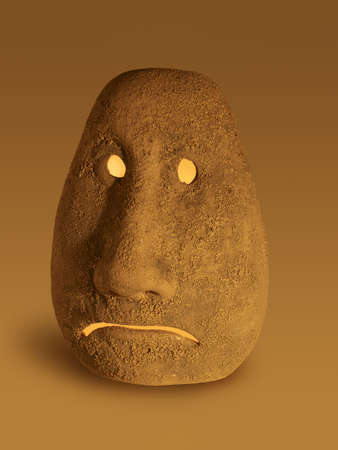 illuminated decorative symbolic ceramic head (candleholder) in warm toned ambiance