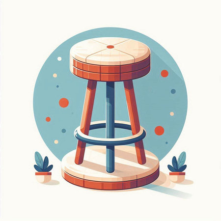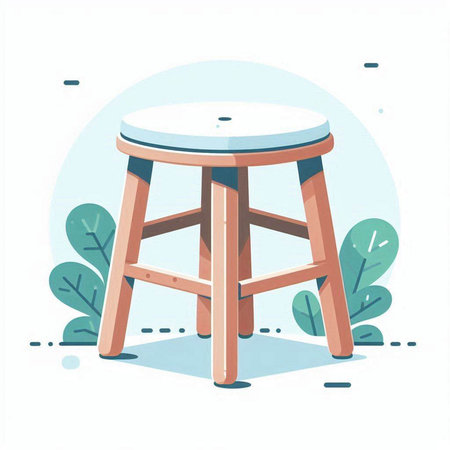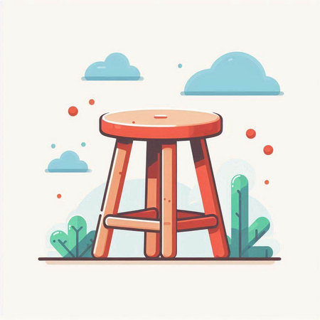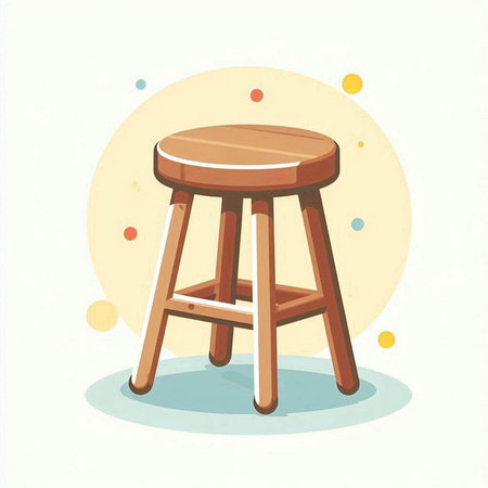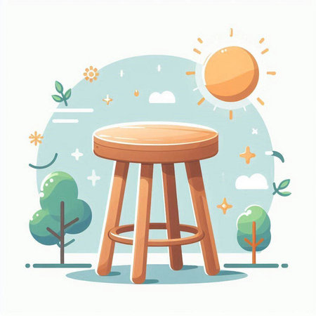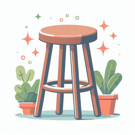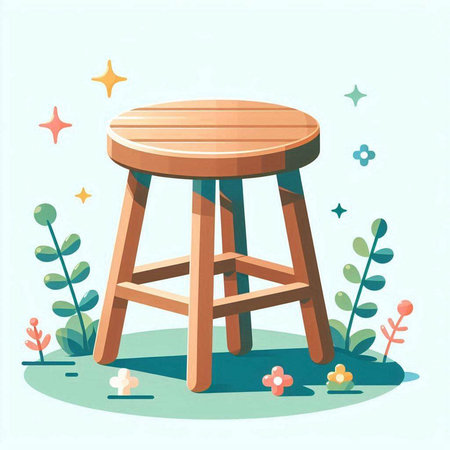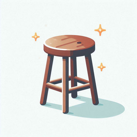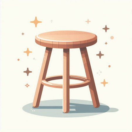 Illustration of a wooden stool on a white background with stars.