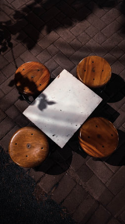 Two wooden stools. Shooting Location: Minato Ward, Tokyo