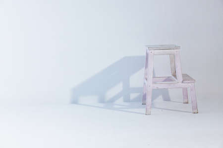 white wooden stand on a light background and a falling shadow indoors