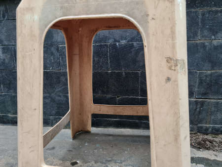 Light brown plastic chair legs background in front of the building wall