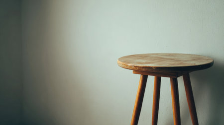 A wooden stool stands alone against a softly colored wall, embodying minimalistic beauty and showcasing the charm of handmade craftsmanship in modern interiors.